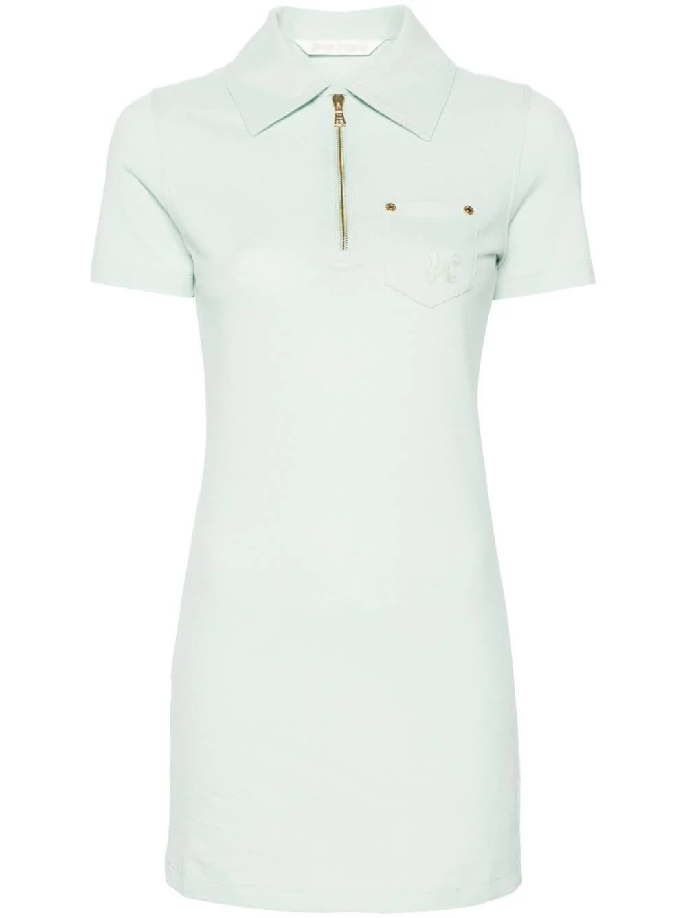 cotton pique polo dress Highlights - Mint green - Cotton - Pique weave - Polo collar - Short sleeves - Chest patch pocket - Embroidered monogram at the chest - Half front zip fastening - Straight hem Made in Italy Composition Cotton 100%, Polyester 100% SIZE & FIT Model measurements Height 5 ft 9 in(1.76 m) Bust/Chest 31.88 in(81 cm) Hips 35.43 in(90 cm) Waist 24.8 in(63 cm) FittingInformation Designed for a slim fit that sits just away from the body offering a close yet comfortable fit Made from a midweight non-stretch fabric, this piece offers minimal elasticity when worn This piece fits true to size – take your usual size