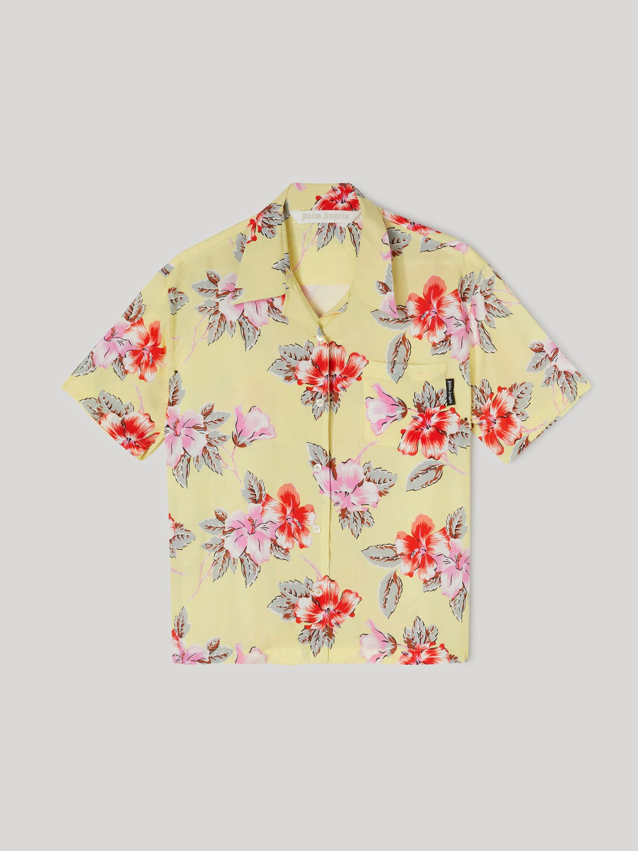 SHORT SLEEVES BOWLING SHIRT IN YELLOW FEATURING MULTICOLOURED HIBISCUS PRINTED ALL OVER. SPREAD COLLAR, BUTTON CLOSURE, FRONTAL POCKET. FABRIC 100% VISCOSE MODEL ESIN WEARS SIZE 40 HEIGHT: 5'8 (178 CM) BUST: 33" (84 CM) WAIST: 24" (61 CM) HIPS: 35" (89 CM) PRODUCT ID: PWGA071S22FAB0051801