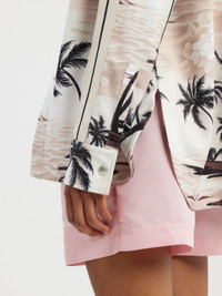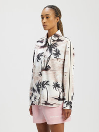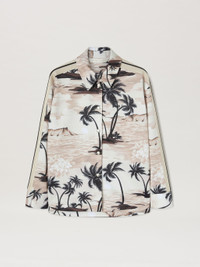 LONG SLEEVES TRACK SHIRT IN BEIGE WITH AN ALL OVER ISLAND MOTIF. SPREAD COLLAR AND BUTTON CLOSURE. BLACK AND WHITE STRIPES DETAILS AT SLEEVES. FABRIC 100% POLYESTER - DETAIL 100% POLYESTER MODEL LAURE WEARS SIZE S HEIGHT: 5’8" (176 CM) CHEST: 31" (78 CM) WAIST: 23" (58 CM) HIPS: 33" (84 CM) PRODUCT ID: PWGA050S23FAB0016110