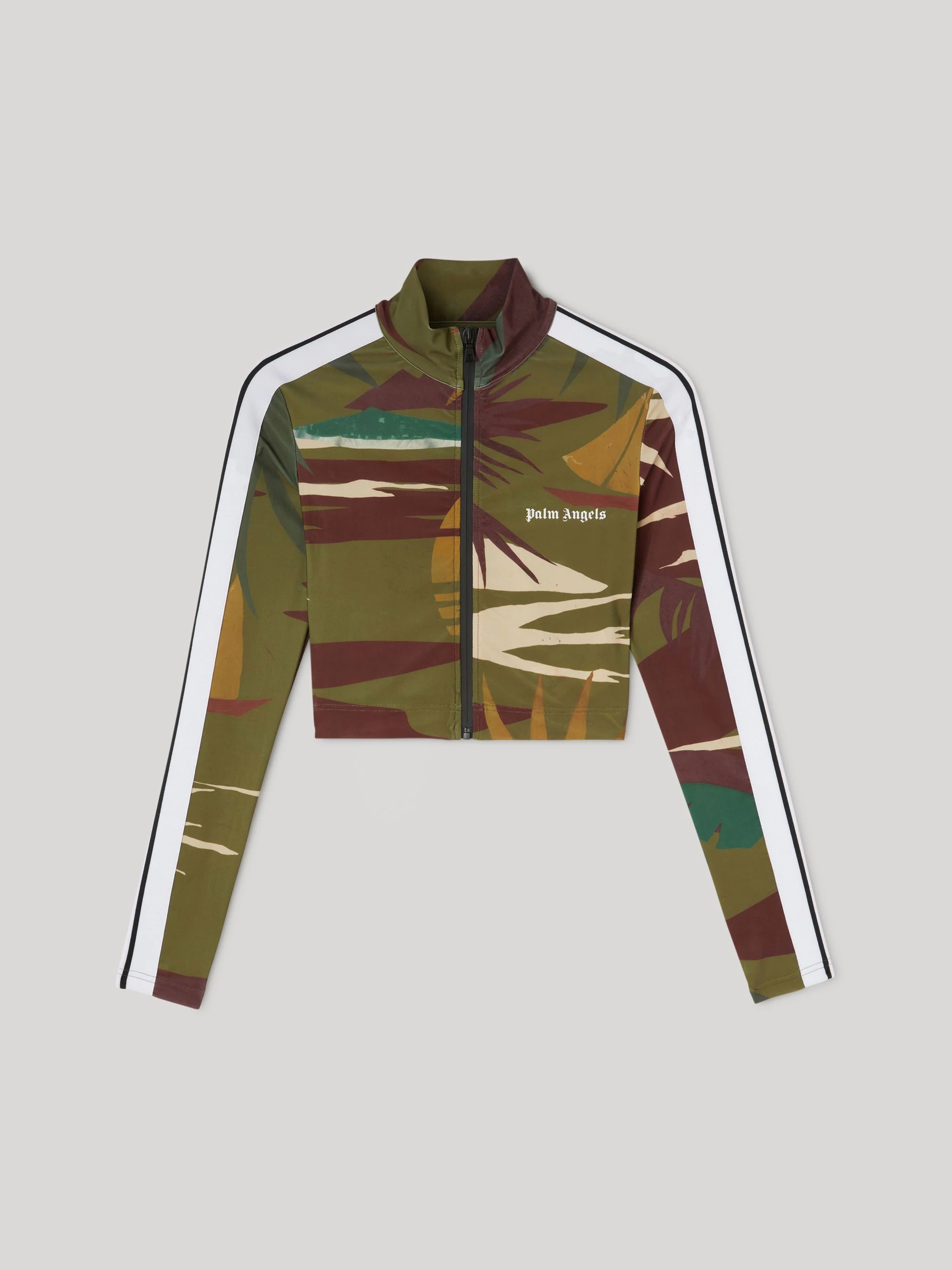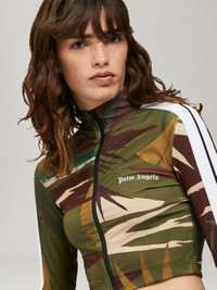 LONG SLEEVE TRAINING TRACK TOP IN MILITARY GREEN FEATURNG JUNGLE GRAPHIC PRINT. ZIPPED CLOSURE AT FRONT. CREWNECK COLLAR. WHITE STRIPES AT SIDE. FABRIC 22% ELASTAN 78% POLYESTER MODEL ESIN WEARS SIZE S HEIGHT: 5'8 (178 CM) BUST: 33" (84 CM) WAIST: 24" (61 CM) HIPS: 35" (89 CM) PRODUCT ID: PWVB001S22FAB0025655