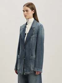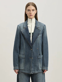 Laser pinstriped denim blazer