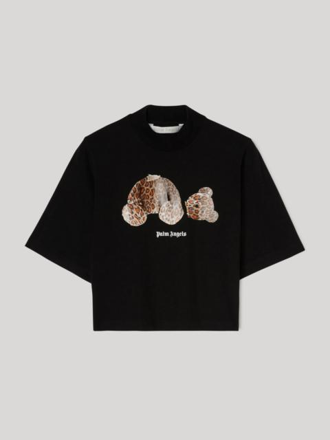 SHORT SLEEVES CROPPED T-SHIRT IN BLACK WITH LEOPARD BEAR GRAPHIC PRINTED AT FRONT. "PALM ANGELS" LOGO PRINTED IN WHITE AT FRONT. CREWNECK COLLAR. FABRIC 100% COTTON MODEL ESIN WEARS SIZE S HEIGHT: 5'8 (178 CM) BUST: 33" (84 CM) WAIST: 24" (61 CM) HIPS: 35" (89 CM) PRODUCT ID: PWAA020S22JER0021060