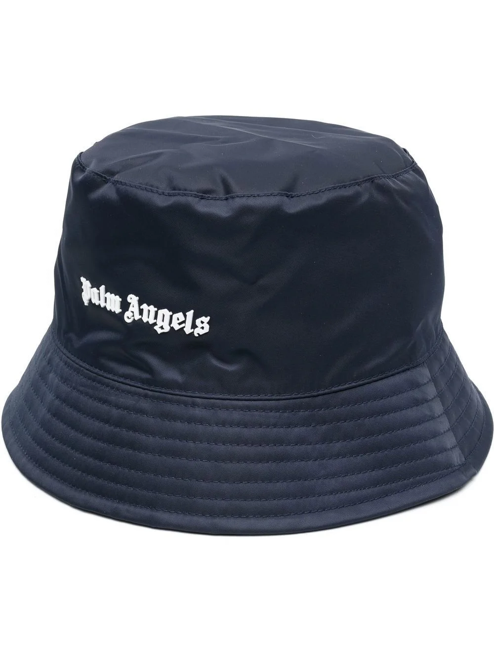 lettering logo bucket hat Designed with a focus on branding, this bucke hat from Palm Angels is presented in a classic navy hue, which allows the contrasting lettering logo to take the focus. Imported Composition Lining: Cotton 100% Outer: Polyester 100%