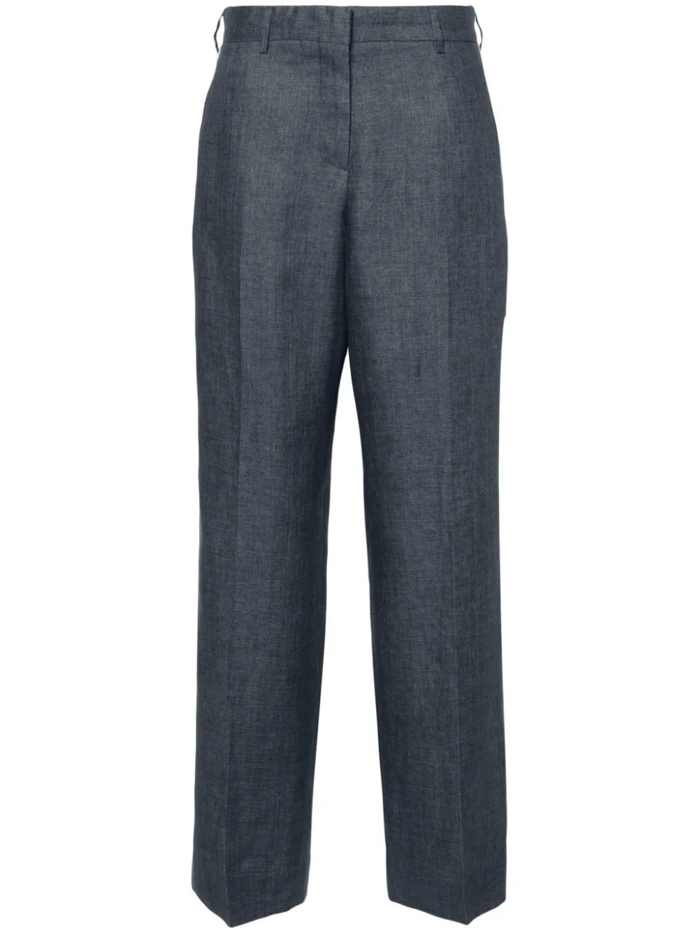 linen side-stripe straight-leg trousers Highlights - Dark grey - Linen/flax - Side stripe detailing with interwoven design - Belt loops - Two side inset pockets - Rear dart detailing - Logo patch to the rear - Two rear flap pockets - Straight leg - Concealed front button, hook and zip fastening Made in Italy Composition Lining: Cotton 100% Outer: Linen/Flax 100% SIZE & FIT Model measurements Height 5 ft 11 in(1.8 m) Bust/Chest 32.67 in(83 cm) Hips 36.22 in(92 cm) Waist 24.4 in(62 cm) FittingInformation Designed for a straight-leg fit, these trousers allow for a close fit at the waist and an unrestricted, comfortable fit over the leg Made from a midweight non-stretch fabric This piece fits true to size – take your usual size
