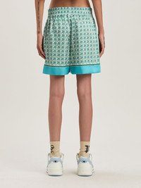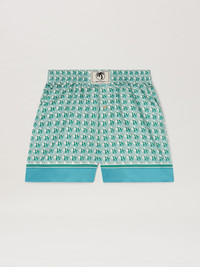 Summer prints that evoke the '70s and give a new flavor to each garment. Women's shorts, with green and ivory Monogram Diamond pattern, light blue piping and white patch with Oval Palm and logo in black on the front. DETAILS - Renda Wears Size 40 Height: 5’ 10” (179 Cm) Bust: 30” (77 Cm) Waist: 23” (60 Cm) Hips: 33” (85 Cm) Detail 100% PolyesterFabric 100% Polyester - Code: PWCB056S25FAB003550B