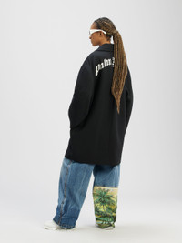 LONG BLACK COAT FEATURING "PALM ANGELS" LOGO IN WHITE AT BACK. SPREAD COLLAR AND BUTTON CLOSURE AT FRONT. TWO POCKETS AT FRONT. DROP SHOULDERS AND OVERSIZE FIT. FABRIC 50% WOOL 23% ACRYLIC 22% POLYESTER 5% ALTRE FIBRE - LINING 100% VISCOSE MODEL LAURE WEARS SIZE 40 HEIGHT: 5’8" (176 CM) CHEST: 31” (78 CM) WAIST: 23” (58 CM) HIPS: 33” (84 CM) PRODUCT ID: PWEA059C99FAB0011001