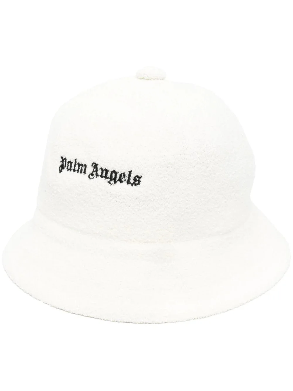 logo-embroidered boucle bucket hat Crafted from soft cotton boucle, this white Palm Angels hat is simply adorned with logo lettering embroidery at the front which is complemented by a palm tree motif on the back. Made in Italy Composition Cotton 100%, Polyester 100% SIZE & FIT Measurement BRIM 2.36 in(6 cm) CIRCUMFERENCE 27.55 in(70 cm) Washing instructions Dry Clean Only