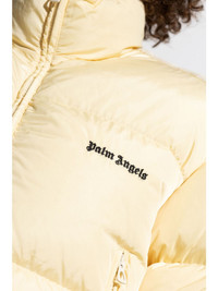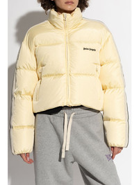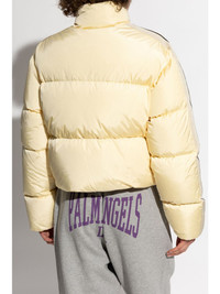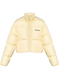 logo-embroidered puffer jacket Highlights - Light yellow - Feather down - Padded design - Embroidered logo at the chest - Front zip fastening - High neck - Long sleeves - Elasticated cuffs - Side stripe detailing - Two side zip-fastening pockets - Straight hem Made in Italy Composition Outer: Polyamide 100% Lining: Polyamide 100%, Polyester 100%, Feather Down 100%