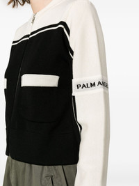 logo-intarsia wool zip cardigan Reminiscent of vintage ‘60s styles, this cream and black Palm Angels zip cardigan puts a retro spin on two of the label’s most celebrated house codes: stripes and logo lettering. The signature lines trace the form while the gothic moniker is intarsia-knit into the sleeve. Highlights - Black/butter beige - Wool - Colour-block design - Intarsia-knit logo - Crew neck - Long sleeves - Front zip fastening - Two front patch pockets - Ribbed trim - Straight hem Made in Italy Composition Wool 100% SIZE & FIT Model measurements Height 5 ft 10 in(1.79 m) Bust/Chest 32.67 in(83 cm) Hips 34.25 in(87 cm) Waist 24.4 in(62 cm) FittingInformation Designed for a relaxed fit, this piece allows for comfort and movement when worn Made with a midweight knit, this piece offers some stretch This piece fits true to size – take your usual size Washing instructions Hand Wash
