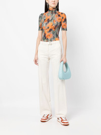 logo-plaque flared jeans Sharp silhouettes inspired by the ‘70s skate scene are Palm Angels' forte, as evidenced by these cream jeans. They're elevated by pressed creases and a polished gold-tone palm tree that nods to the brand's penchant for playful detailing. Made in Italy Composition Polyester 65%, Cotton 35% SIZE & FIT Model measurements Height 5 ft 10 in(1.78 m) Bust/Chest 30.7 in(78 cm) Hips 36.22 in(92 cm) Waist 23.62 in(60 cm) Washing instructions Machine Wash