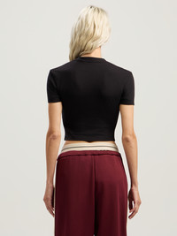 This fitted baby tee is crafted from soft cotton jersey, featuring a dynamic curved logo across the chest. - Short-sleeved, fitted silhouette - Curved front logo detail - Soft cotton jersey construction - Classic crew neckline - Minimalist rear design DETAILS - 47% Cotton 47% Polyester 6% Elastan - Code: PWAA077F25JER0021032