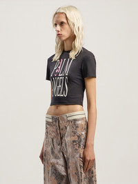Cropped tee featuring bold logo print and a relaxed fit for street-ready style. - Crew neck - Short sleeves - Large front logo - Cropped hem DETAILS - 47% Cotton 47% Polyester 6% Elastan - Code: PWAA077F25JER0031003