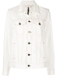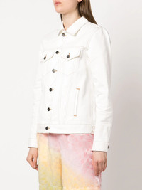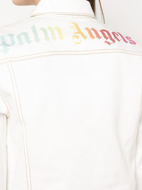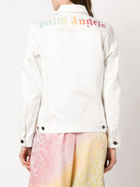 logo-print denim jacket Inspired by the Los Angeles skateboard scene and the founder's Italian heritage, Palm Angels creates refined pieces with streetwear influences. Seen on this denim jacket, the garment features a classic long-sleeve silhouette and front button fastening alongside a logo print across the back in a creative multicolour colourway. Made in Italy Composition Body: Cotton 100% SIZE & FIT Model measurements Height 5 ft 10 in(1.77 m) Bust/Chest 33.85 in(86 cm) Hips 35.03 in(89 cm) Waist 24.01 in(61 cm) Washing instructions Machine Wash