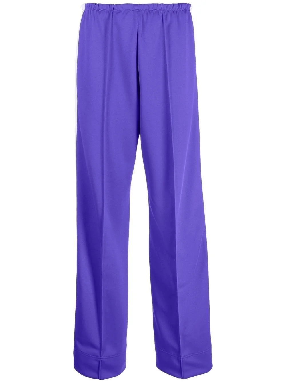 logo-print track pants Realised in a purple hue, these casual track pants from streetwear label Palm Angels are made instantly recognisable by contrasting logo print detailing to the front. Meanwhile, an elasticated waistband ensures a comfortable fit. Made in Italy Composition Lining: Cotton 100% Outer: Polyester 100%