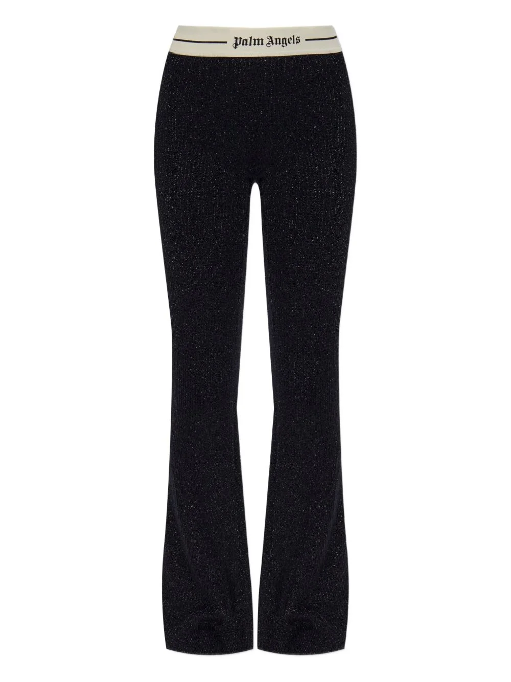 logo-waistband flared trousers Highlights - Black - Ribbed fabric - Elasticated waistband - Logo waistband - Glitter flecks Made in Italy Composition Polyester 91%, Elastane 9% Washing instructions Read Manufacturer Guidelines