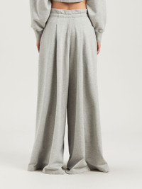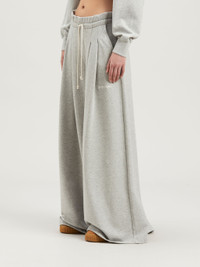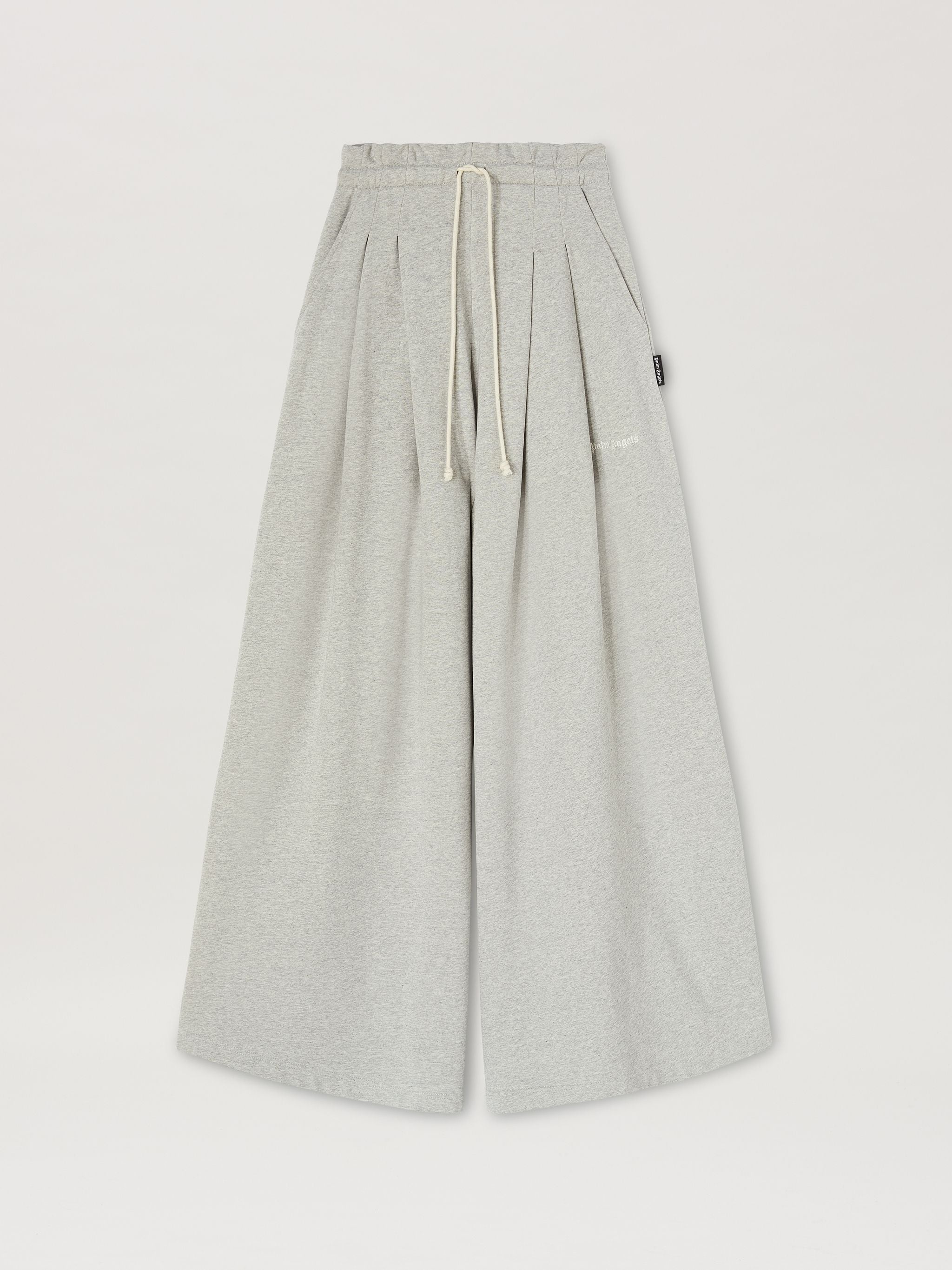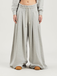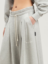 Women's grey wide sweat pants with waistband drawstring, front and back pleats, side pockets and Palm Angels logo fully embroidered in white on the front. FABRIC 100% COTTON EMBROIDERY 100% POLYESTER DETAIL 100% COTTON MODEL HANNA WEARS SIZE S HEIGHT: 5'8" (177 CM) BUST: 31" (80 CM) WAIST: 24" (62 CM) HIPS: 35" (88 CM) PRODUCT ID: PWCH016F23FLE0020803