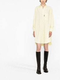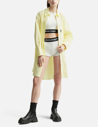 long-sleeves shirt dress long-sleeves shirt dress from PALM ANGELS featuring yellow, classic collar, front button fastening, long sleeves, buttoned cuffs and curved hem. Made in Italy Composition Cotton 100%, Polyester 100% SIZE & FIT Model measurements Height 5 ft 10 in(1.78 m) Bust/Chest 29.9 in(76 cm) Hips 34.6 in(88 cm) Waist 23.6 in(60 cm) FittingInformation Designed to be unstructured, offering a loose fit throughout Made from a midweight non-stretch fabric, this piece offers minimal elasticity when worn This piece fits true to size – take your usual size