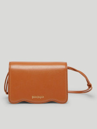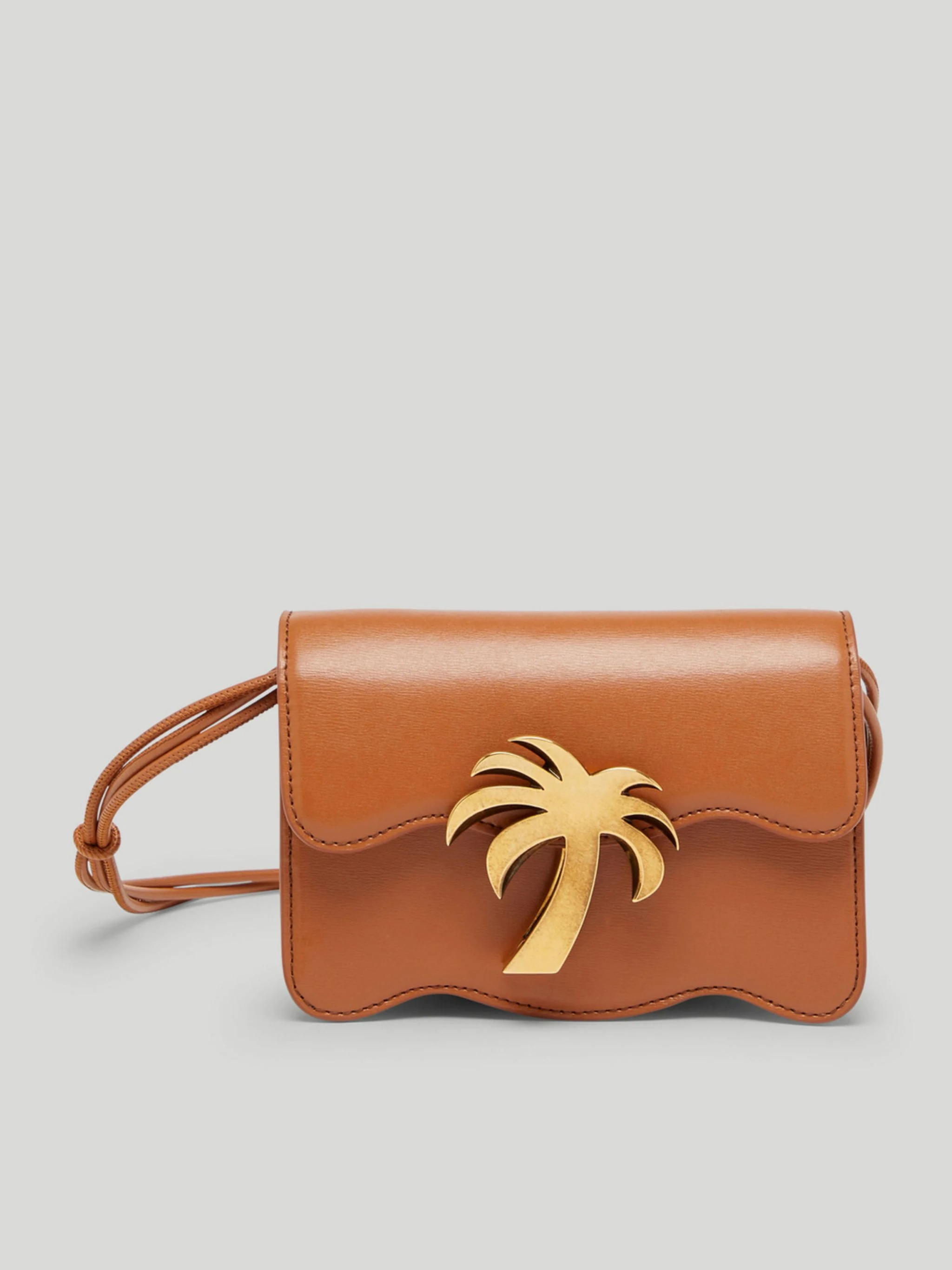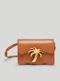 Expression of uniqueness, strong personality and a free mindset since its beginning, Palm Angels unveils the new Palm Beach bag, designed to become the brand's new iconic bag. Made from calfskin leather, with matching handmade profiles, the Palm Beach bag is offered as a crossbody bag in the small version. The iconic palm tree silhouette, in shiny gold and faceted 3D metal, acts as a closure, stating the perfect union between the essence of freedom of a life by the beach and with a metropolitan attitude. 100% CALF LEATHER Made in Italy HEIGHT: 4.5" (11.5 CM) LENGTH: 7" (18 CM) DEPTH: 2.7" (7 CM) WEIGHT: 320 GR PRODUCT ID: PWNQ009S22LEA0016076