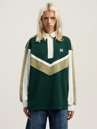 Elevate your streetwear collection with this Monogram Colorblock Polo Shirt, expertly crafted for a blend of comfort and style. - Long-sleeved polo shirt in premium fabric - Features a monogram logo on the front - Distinctive colorblock pattern for a bold look - Half-zip fastening with a classic collar - Contrasting stripe details along the sleeves - Relaxed fit for effortless wear - Ribbed cuffs for added structure - Signature chevron design at front and back DETAILS - 100% Cotton, Embroidery: 100% Polyester, Fabric: 100% Cotton, Lining: 100% Cotton - Code: PWGC011F25FAB0015203