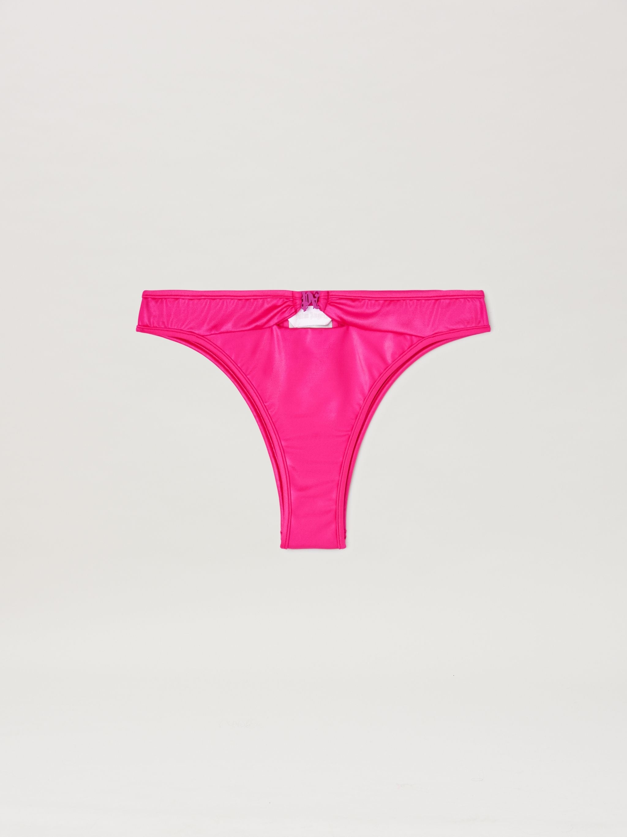 Crossing style contexts, sharing the same patterns, colors and Monogram details. Women's fuchsia cut out bikini bottom with front Monogram snap closure. DETAIL 100% BRASS - FABRIC 21% ELASTAN 79% POLYAMIDE - LINING 12% ELASTAN 88% POLYESTER ANNA WEARS SIZE S HEIGHT: 5' 9" (176 CM) BUST: 30" (78 CM) WAIST: 23" (59 CM) HIPS: 35" (89 CM) PRODUCT ID: PWFG014F24FAB0023232