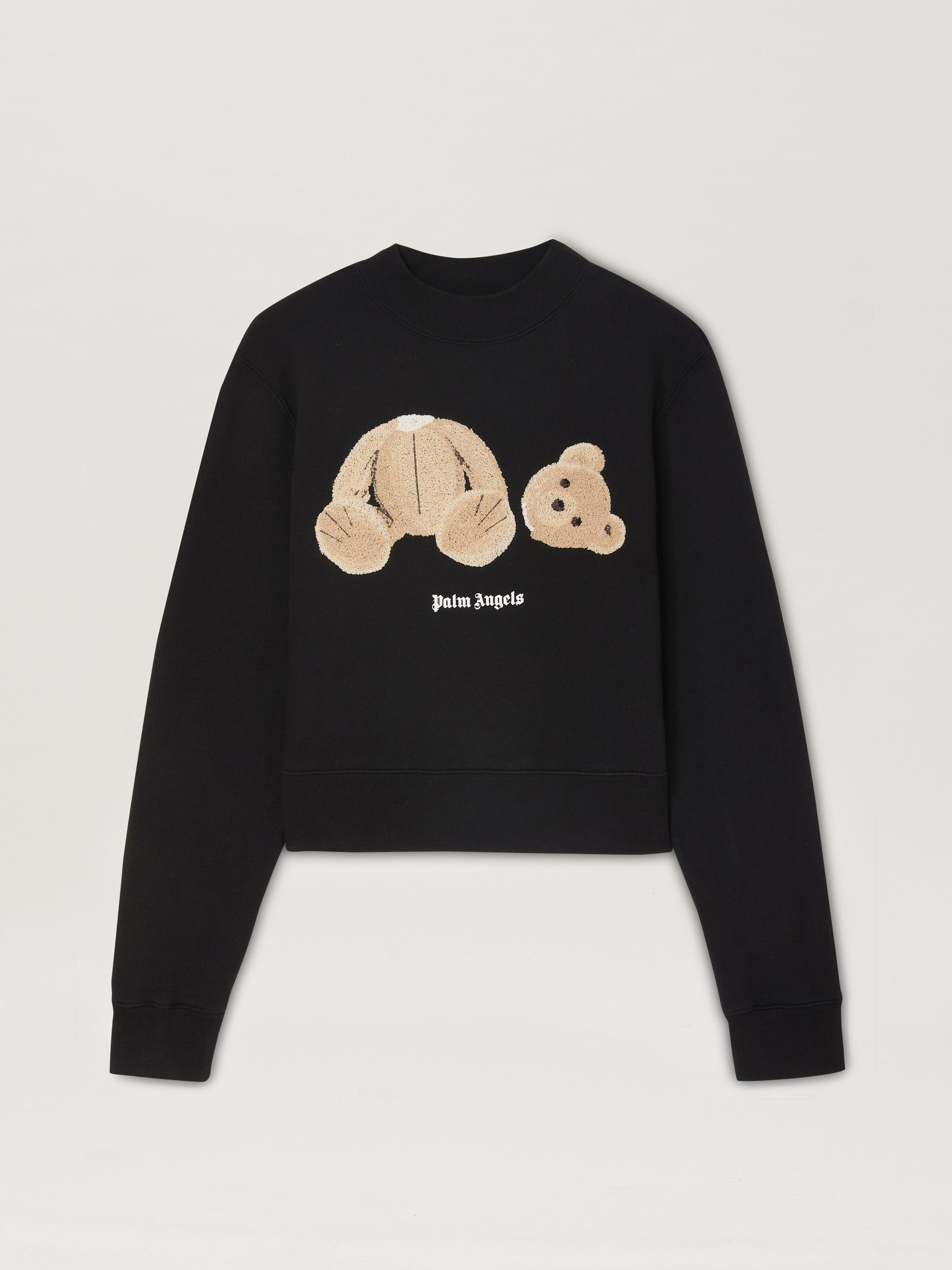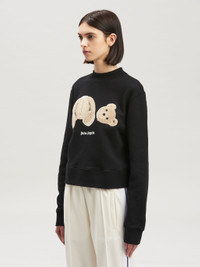 LONG SLEEVES FITTED SWEATSHIRT IN BLACK COTTON WITH BEAR GRAPHIC EMBROIDERED AT FRONT. "PALM ANGELS" LOGO PRINTED IN WHITE AT FRONT. RIB KNIT CUFFS AND HEM. CREWNECK COLLAR. FABRIC 100% COTTON PRODUCT ID: PWBA016C99FLE0021060