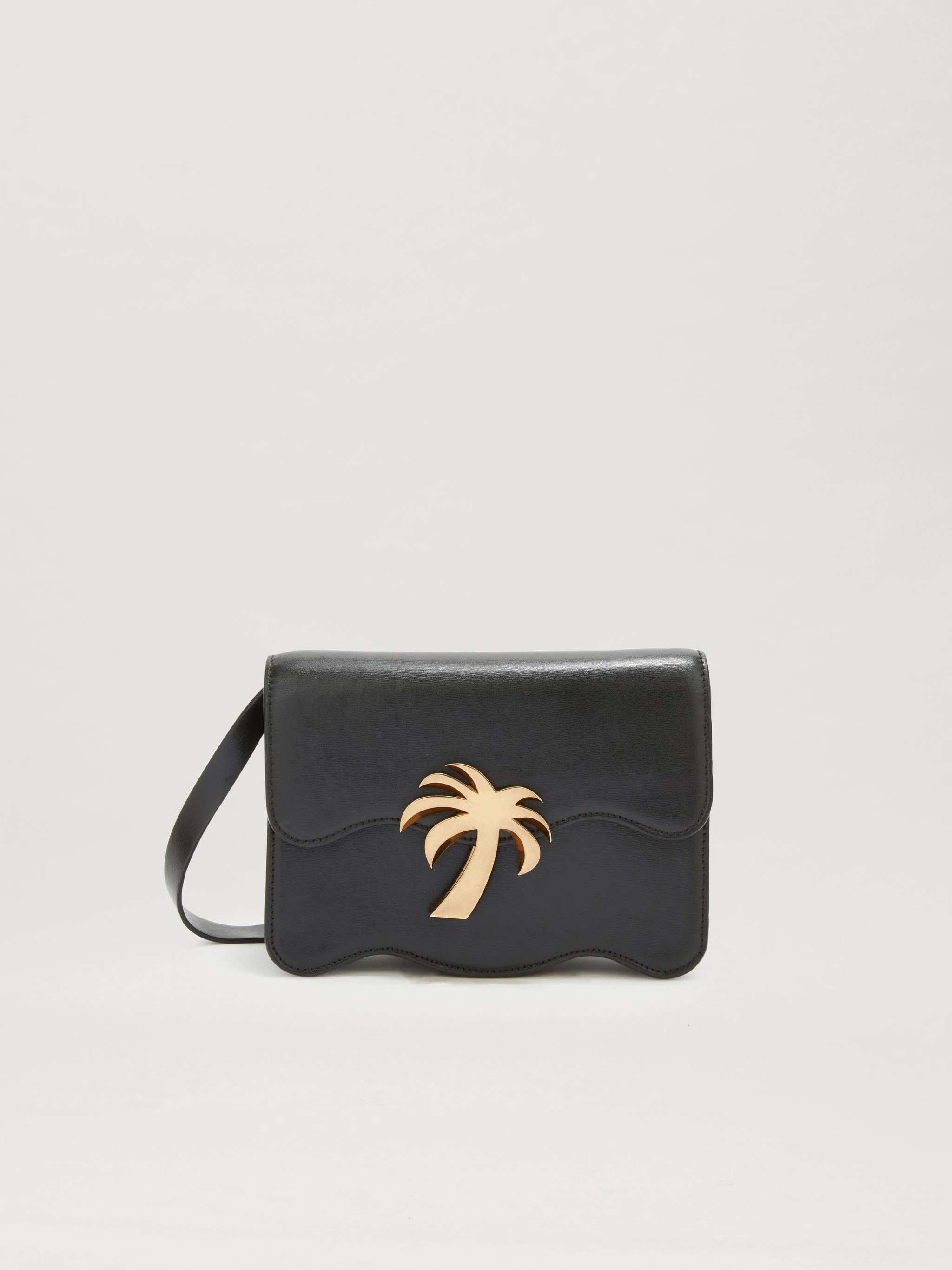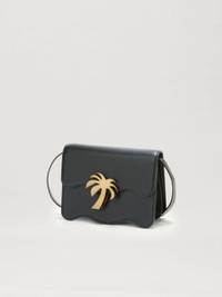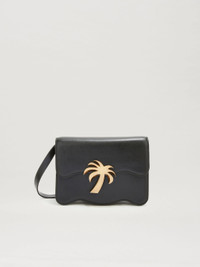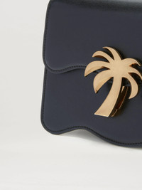 EXPRESSION OF UNIQUENESS, STRONG PERSONALITY AND A FREE MINDSET SINCE ITS BEGINNING, PALM ANGELS UNVEILS THE NEW PALM BEACH BAG, DESIGNED TO BECOME THE BRAND'S NEW ICONIC BAG. MADE FROM CALFSKIN LEATHER, WITH MATCHING HANDMADE PROFILES, THE PALM BEACH BAG HAS AN ADJUSTABLE SHOULDER STRAP IN THE MEDIUM VERSION. THE ICONIC PALM TREE SILHOUETTE, IN SHINY GOLD AND FACETED 3D METAL, ACTS AS A CLOSURE, STATING THE PERFECT UNION BETWEEN THE ESSENCE OF FREEDOM OF A LIFE BY THE BEACH AND WITH A METROPOLITAN ATTITUDE. FABRIC 100% LEATHER CALF - LINING 30% POLYESTER 5% VISCOSE 65% POLYURETHANE LENGTH: 8.2" (21 CM) HEIGHT: 6" (15 CM) DEPTH: 3" (7,5 CM) PRODUCT ID: PWNQ008F22LEA0011076
