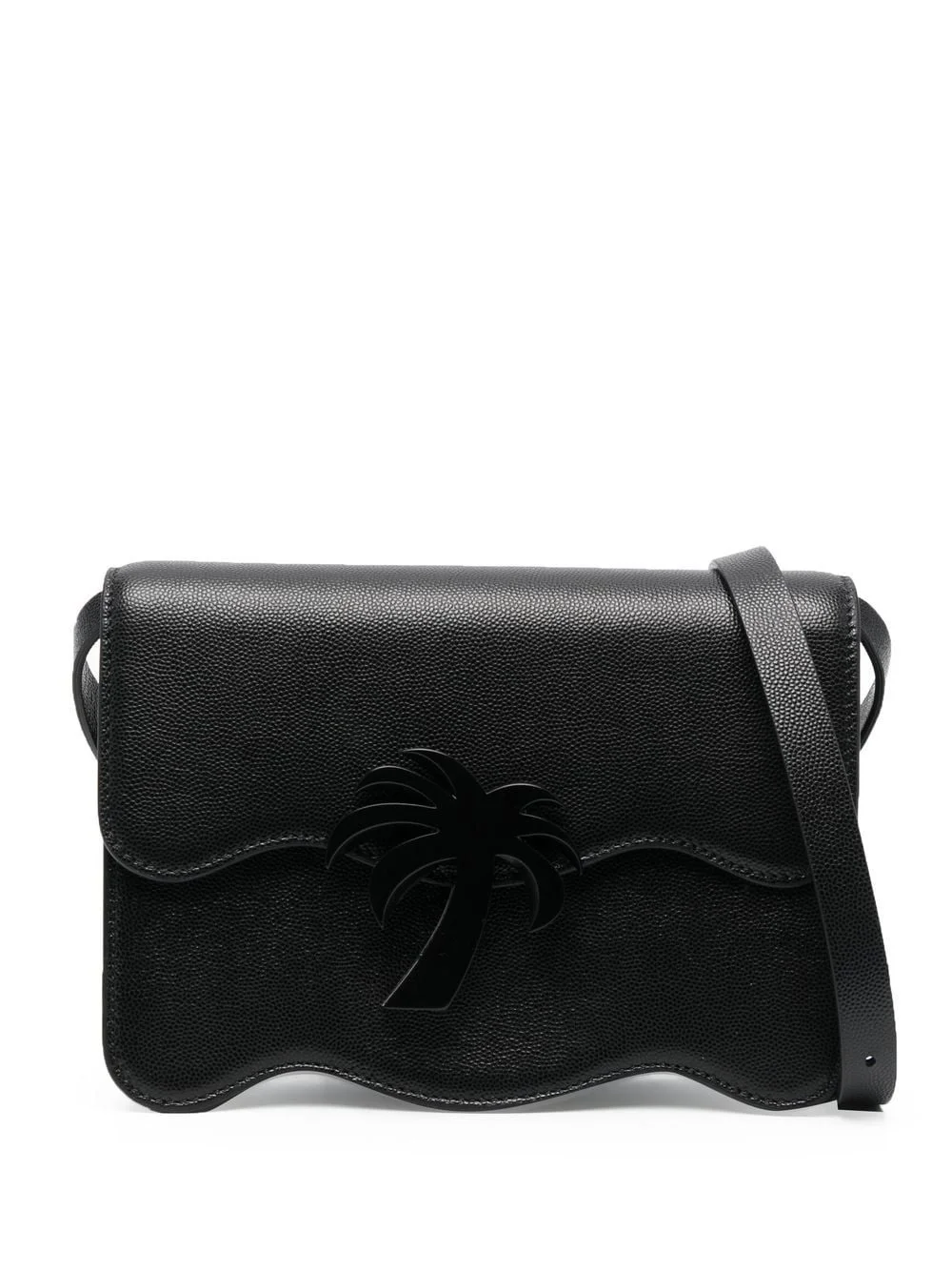 Palm Beach tonal shoulder bag L.A. label Palm Angels is inspired by the skateboard scene and the city's relaxed vibe. The Palm Beach shoulder bag is a sleek take on the brand's aesthetic, constructed in a black-hued tonal design. The brand's iconic palm provides the finishing touch to the piece. Made in Italy Composition Outer: Calf Leather 100% Lining: Polyurethane 65%, Polyamide 30%, Viscose 5% SIZE & FIT Measurement DEPTH 3.14 in(8 cm) HEIGHT 6.69 in(17 cm) STRAP 19.68 in(50 cm) WIDTH 8.26 in(21 cm)