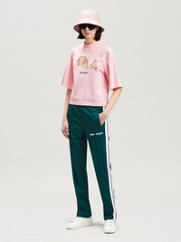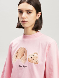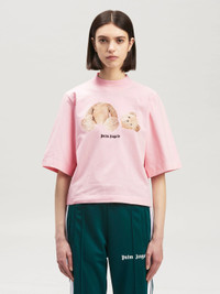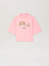 SHORT SLEEVES CROPPED T-SHIRT IN PINK COTTON WITH BEAR GRAPHIC AND BLACK LOGO PRINTED AT FRONT. CREWNECK COLLAR. FABRIC 100% COTTON - RIB DETAIL 100% COTTON MODEL MARGHERITA WEARS SIZE S HEIGHT: 5.9" (180 CM) BUST: 30.7” (78 CM) WAIST: 22.8” (58 CM) HIPS: 34.6” (90 CM) PRODUCT ID: PWAA020C99JER0013460