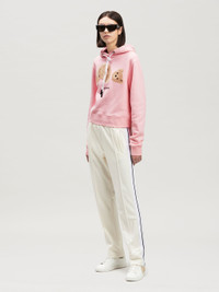 LONG SLEEVES HOODED SWEATSHIRT IN BLOSSOM PINK COTTON WITH BEAR GRAPHIC EMBROIDERED AT FRONT. "PALM ANGELS" LOGO PRINTED IN BLACK AT FRONT. WHITE LOGOED DRAWSTRINGS. FABRIC 100% COTTON - EMBROIDERY 45% ACRYLIC 45% WOOL 5% COTTON 5% POLYESTER - RIB DETAIL 3% ELASTAN 97% COTTON MODEL MARGHERITA WEARS SIZE S HEIGHT: 5.9" (180 CM) BUST: 30.7” (78 CM) WAIST: 22.8” (58 CM) HIPS: 34.6” (90 CM) PRODUCT ID: PWBB022C99FLE0013460