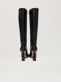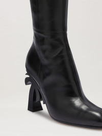 Women's black leather boot with special palm-shaped heel. sole 100% LEATHER upper shoe 100% LEATHER HEELS: 3.7" (95 MM) PRODUCT ID: PWIE013F23LEA0011000