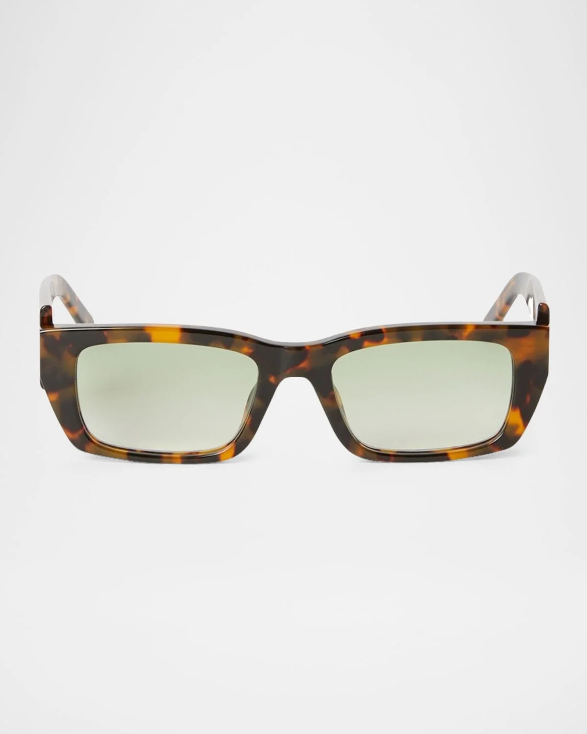 - Palm Angels "Palm" tortoise rectangle sunglasses in acetate - Eye/bridge/temple (in mm): 53-19-145 - Gradient lenses - Saddle nose bridge - Thick, tapered arms - Classic logo at the temples - Acetate - 100% UVA/UVB protection - Made in Italy - Proposition 65 warning for California residents