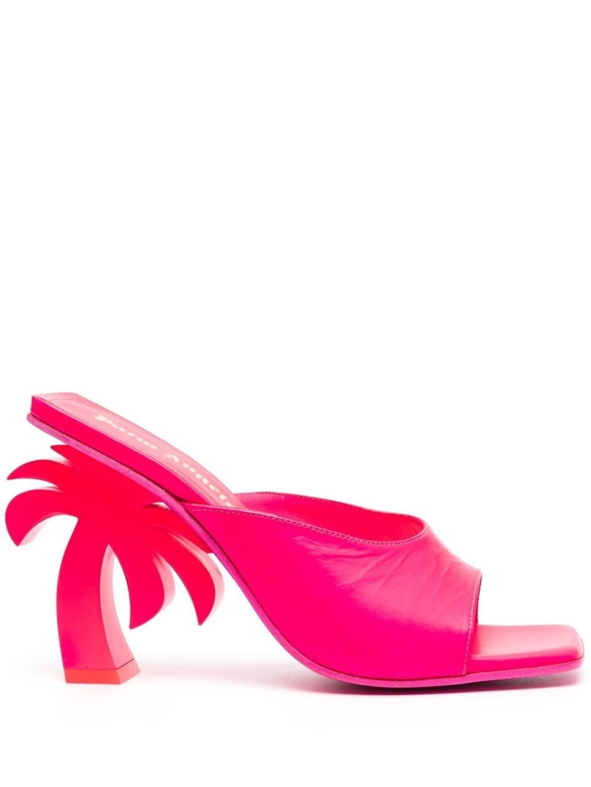 Palm square-toe mules from PALM ANGELS featuring fuchsia pink, calf leather, high sculpted heel, open toe, square toe and branded leather insole. Size & Fit HEEL: 10.5cm Sole height: 1cm Fabric and Care Designer Style ID: PWIJ003F22LEA0013200 Designer Colour: 3200 FUCHSIA NO COLOR Composition: Sole: Calf leather 100%; Outer: Calf leather 100%; Lining: Calf leather 100%Made in Italy