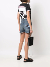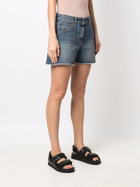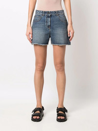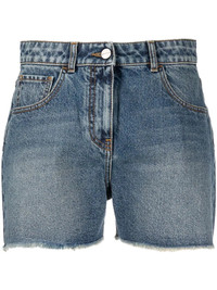 palm tree-embroidered frayed denim shorts Inspired by the beaches and palm trees of California, Palm Angels' iconic palm tree is seen at the rear pocket of these shorts, infusing a classic style with their playful motif. Made in Italy Composition Cotton 100%, Polyester 100% SIZE & FIT Model measurements Height 5 ft 9 in(1.76 m) Bust/Chest 33.07 in(84 cm) Hips 34.64 in(88 cm) Waist 25.59 in(65 cm) FittingInformation This piece fits true to size. We recommend you get your regular size Designed to be fitted at the waist and hips, loose over the leg Made with a mid-weight non-stretch fabric Washing instructions Machine Wash
