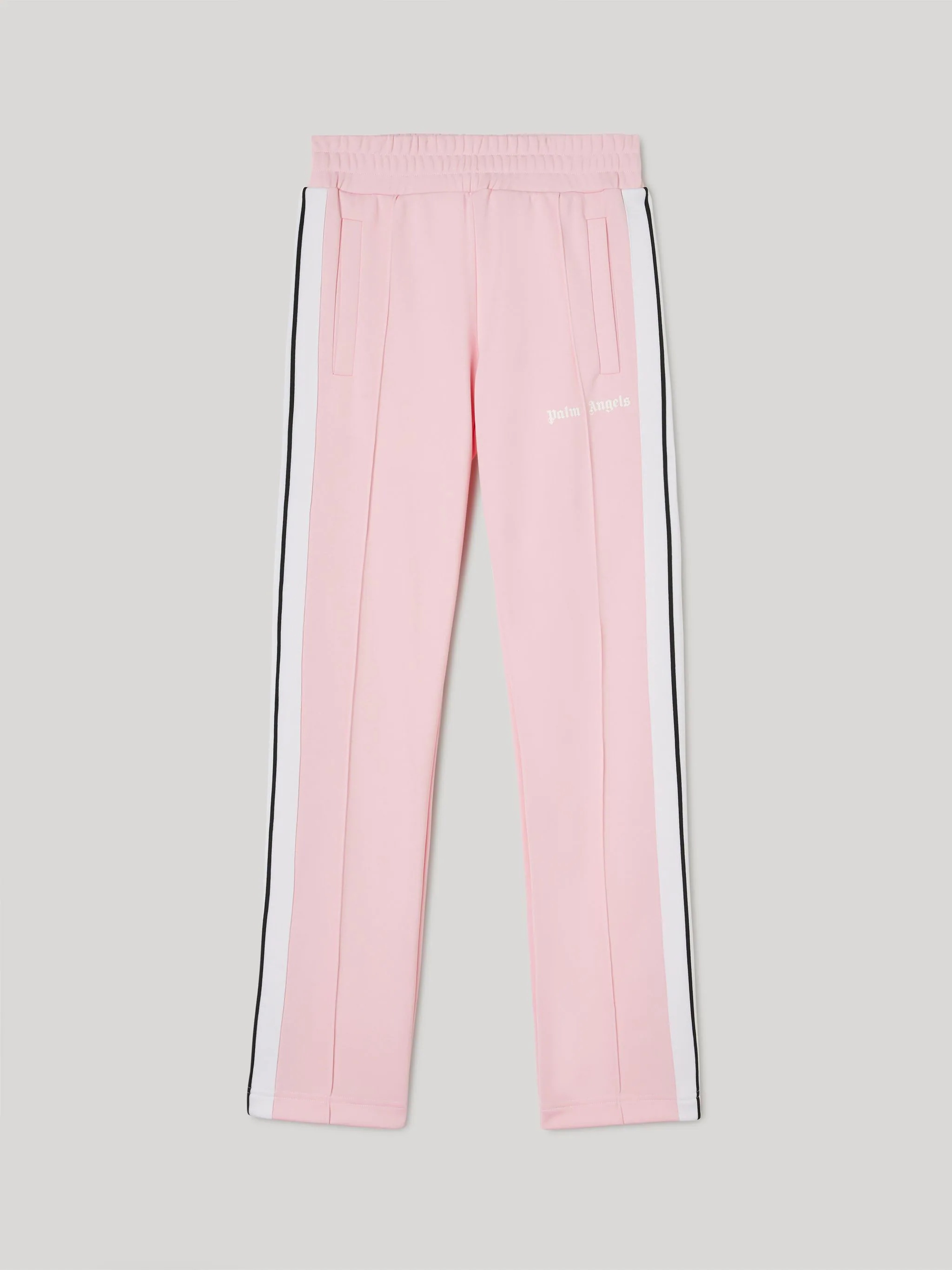 LONG TRACK PANTS IN BLOSSOM PINK. ELASTICIZED WAISTBAND. TWO-POCKET STYLING. CENTRAL PINCH SEAMS AND "PALM ANGELS" LOGO PRINTED AT FRONT. WHITE STRIPES AT SIDE LEGS. ZIP CLOSURE AT ANKLE CUFFS. FABRIC 100% POLYESTER MODEL ESIN WEARS SIZE S HEIGHT: 5'8 (178 CM) BUST: 33" (84 CM) WAIST: 24" (61 CM) HIPS: 35" (89 CM) PRODUCT ID: PWCJ001C99FAB0013401