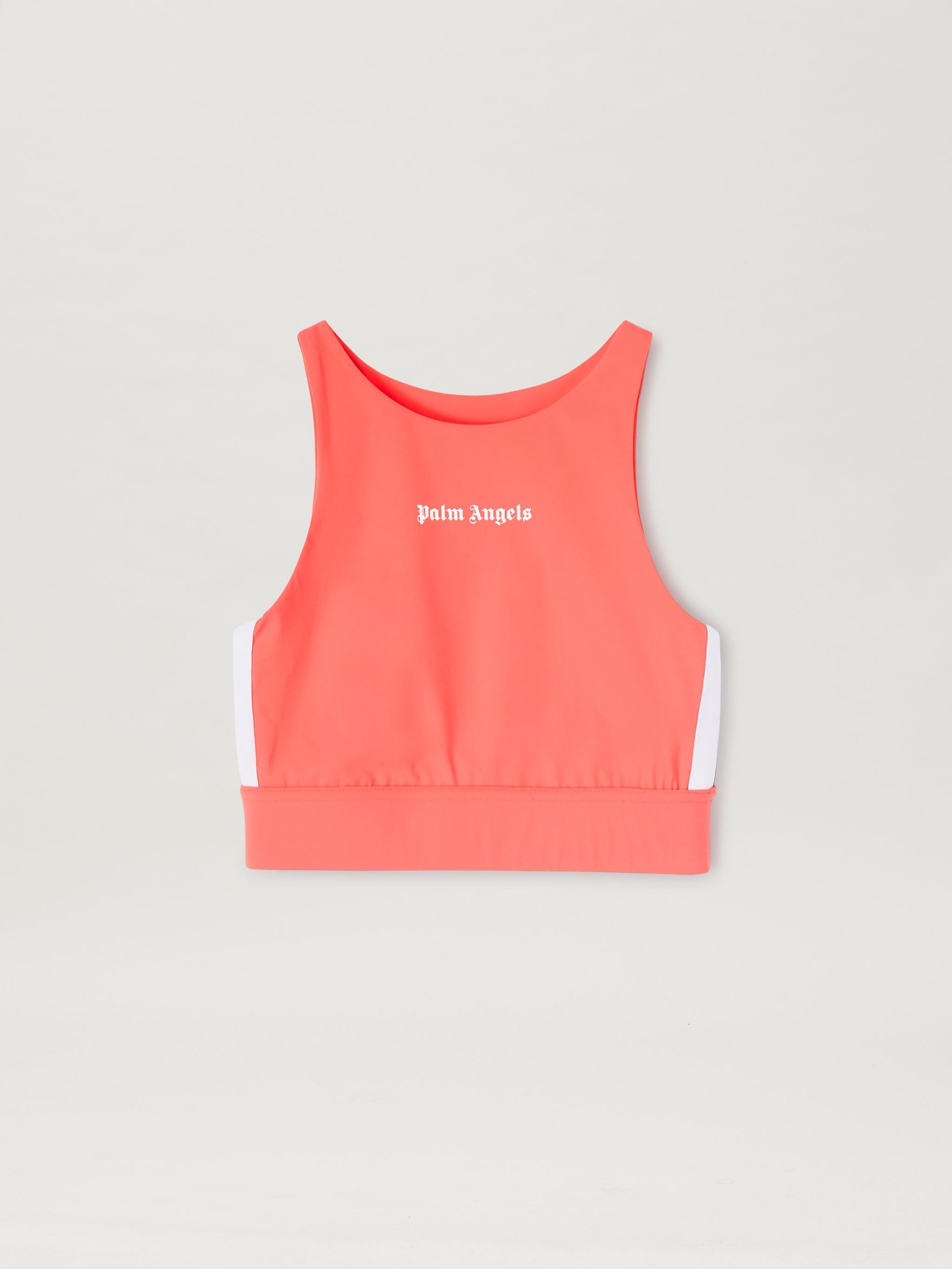 FUCHSIA TRAINING TOP FEATURING WHITE AND BLACK STRIPES AT SIDES AND "PALM ANGELS" LOGO PRINTED AT FRONT IN WHITE. DETAIL 100% POLYESTER - FABRIC 20% ELASTAN 80% POLYAMIDE MODEL IVANA WEARS SIZE S HEIGHT: 5’9" (179 CM) CHEST: 33” (85 CM) WAIST: 24” (61 CM) HIPS: 34” (87 CM) PRODUCT ID: PWVO001S23FAB0013201