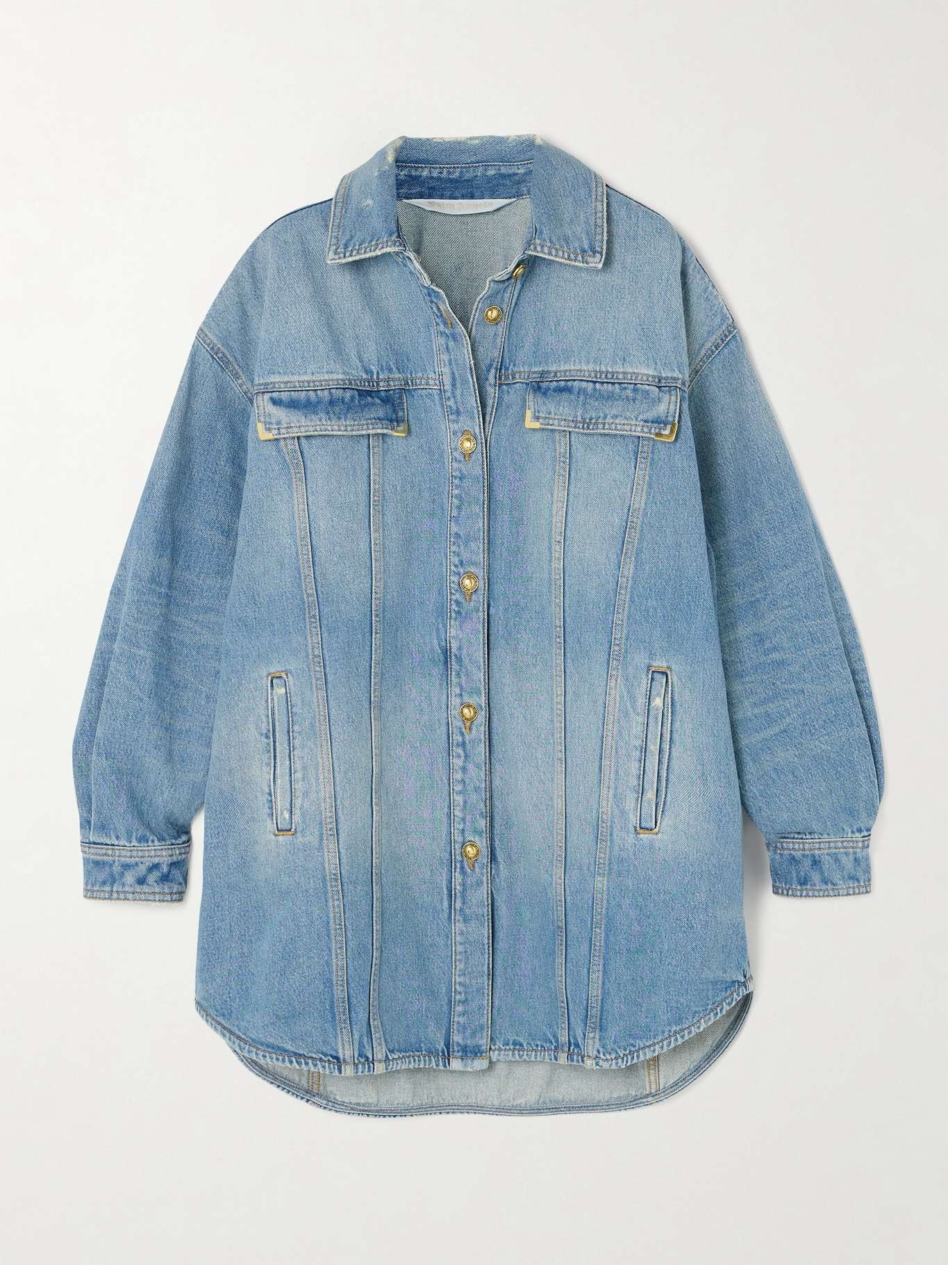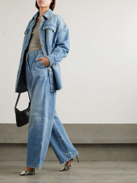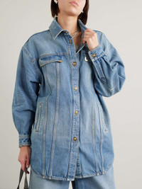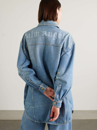 EDITORS'NOTES If you like baggy silhouettes, you're in safe hands – Palm Angels reigns when it comes to laid-back cool. This overshirt is cut in a slouchy fit from lightly distressed denim and printed with a signature logo at the back. SIZE & FIT - Fits true to size, take your normal size - Designed for a loose fit - Mid-weight, non-stretchy fabric - Model is 177cm/ 5'10" and is wearing a size Small DETAILS & CARE - Light-blue denim - Button fastenings through front - 100% cotton; lining: 65% polyester, 35% cotton - Machine wash