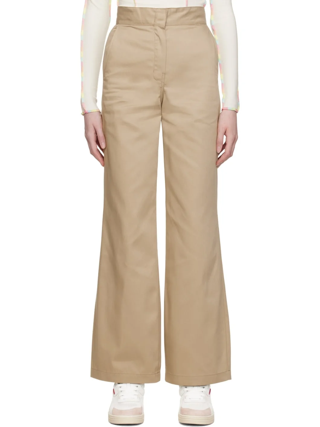 Polyester- and cotton-blend twill trousers. · High-rise · Four-pocket styling · Zip-fly · Darts at back Supplier color: Beige/White Body: 65% polyester, 35% cotton. Trim 1: 100% cotton. Trim 2: 100% polyester. Lining: 65% polyester, 35% cotton. Made in Italy 231695F087000