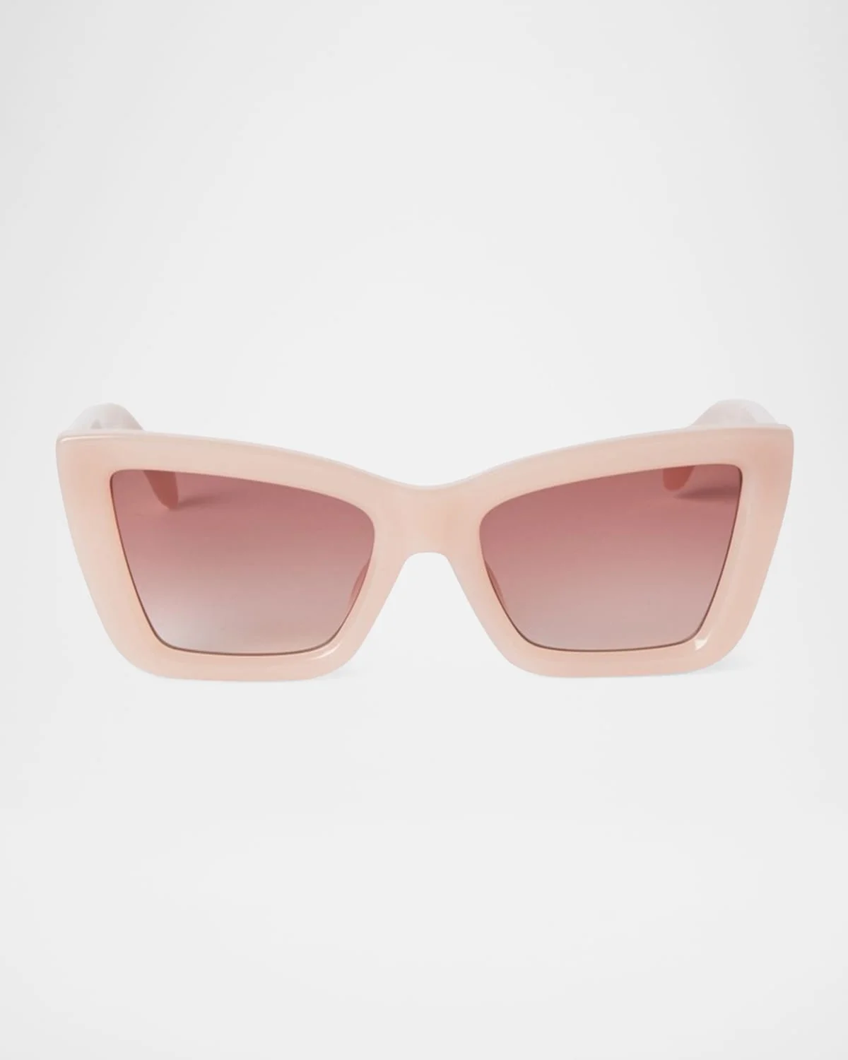 - Palm Angels "Roseville" cat-eye sunglasses in acetate - Eye/bridge/temple (in mm): 44-19-145 - Gradient lenses - Saddle nose bridge - Thin, tapered arms - Classic logo detail at the temples - Acetate - 100% UVA/UVB protection - Made in Italy - Proposition 65 warning for California residents