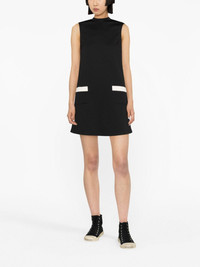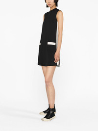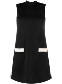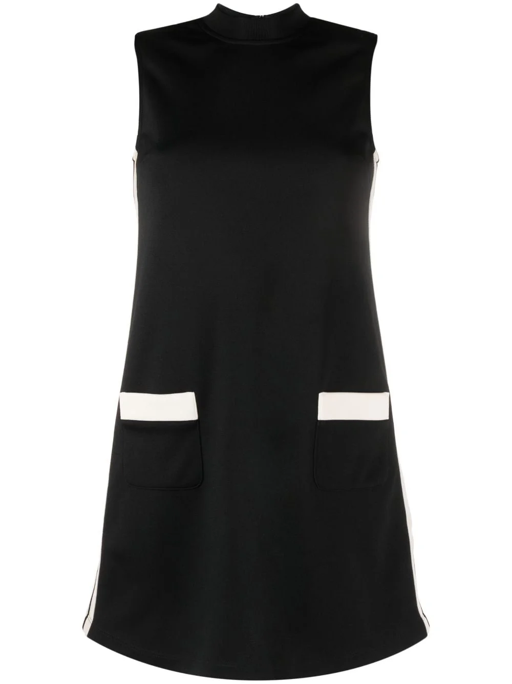 side stripe minidress Contrasting side stripes put a sporty spin on the mod mock-neck shift silhouette of this black Palm Angels minidress. White trims at the front patch pockets further enhance its retro inclinations. Highlights - Black/white - Side stripe detailing - Crew neck - Sleeveless - Two front patch pockets - Contrasting trim - Concealed rear zip fastening - Straight hem - Thigh-length Made in Italy Composition Polyester 100% SIZE & FIT Model measurements Height 5 ft 10 in(1.78 m) Bust/Chest 29.92 in(76 cm) Hips 34.64 in(88 cm) Waist 23.62 in(60 cm) FittingInformation Designed for a close fit at the chest and waist with a loose fit at the hip Made from a midweight stretch fabric, this piece offers elasticity and flexibility when worn This piece fits true to size – take your usual size Washing instructions Dry Clean Only