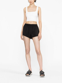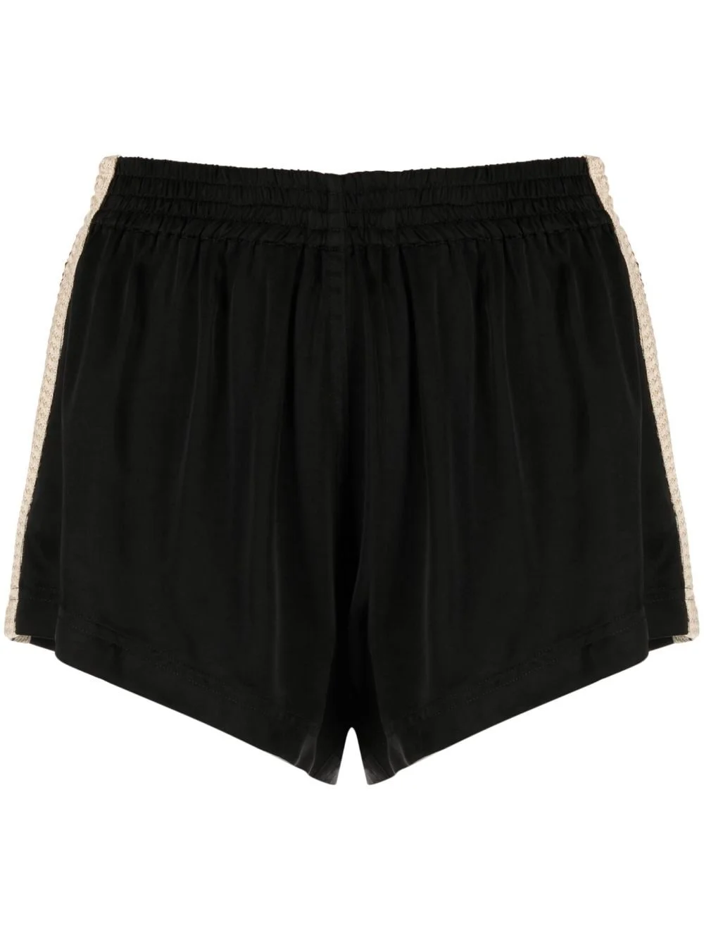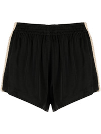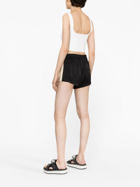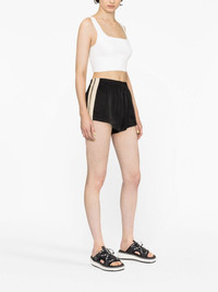 side-stripe track shorts Palm Angels' signature LA-cool aesthetic is captured in these shorts. They're cut with an elasticated waistband and loose silhouette for a comfortable fit, while a contrasting side stripe on the sides lends the garment a retro, sporty feel. Highlights - Black/off-white - Side stripe detailing - Elasticated waistband - Wide leg Made in Italy Composition Cotton 100%, Cupro 100% SIZE & FIT Model measurements Height 5 ft 10 in(1.78 m) Bust/Chest 30.7 in(78 cm) Hips 34.64 in(88 cm) Waist 23.22 in(59 cm) FittingInformation Designed for a loose fit, offering comfort and movement when worn The elasticated waist allows for a comfortable fit Made from a lightweight non-stretch fabric This piece fits true to size – take your usual size
