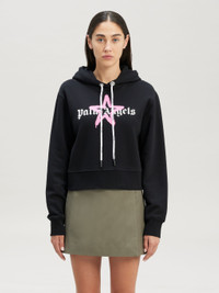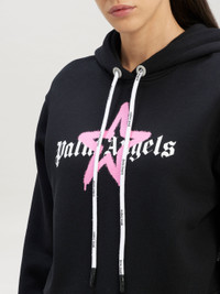 LONG SLEEVES HOODIE IN BLACK COTTON FEATURING WHITE "PALM ANGELS" LOGO AND A PINK STAR GRAPHIC AT FRONT. LOGOED WHITE DRAWSTRINGS. RIB KNIT HEM AND CUFFS. FABRIC 100% COTTON MODEL IVANA WEARS SIZE S HEIGHT: 5’9" (179 CM) CHEST: 33” (85 CM) WAIST: 24” (61 CM) HIPS: 34” (87 CM) PRODUCT ID: PWBB022C99FLE0031030