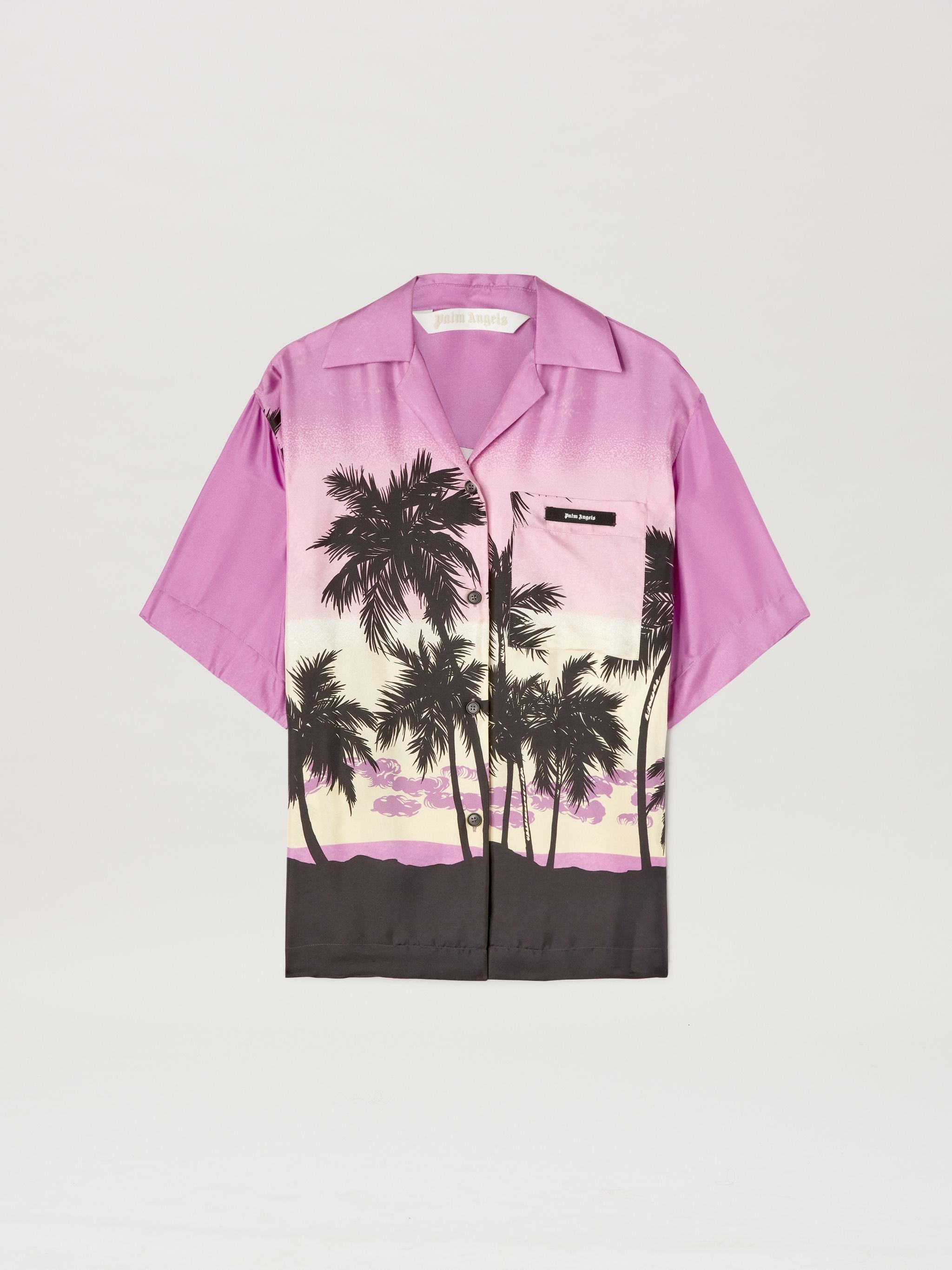 SHORT SLEEVES BOWLING SHIRT IN PINK WITH SUNSET BLACK GRAPHIC. DROP SHOULDERS AND OVERSIZE FIT. SPREAD COLLAR AND BUTTON CLOSURE. FABRIC 100% SILK - DETAIL 100% POLYESTER MODEL IVANA WEARS SIZE 40 HEIGHT: 5’9" (179 CM) CHEST: 33" (85 CM) WAIST: 24" (61 CM) HIPS: 34" (87 CM) PRODUCT ID: PWGG001S23FAB0063710