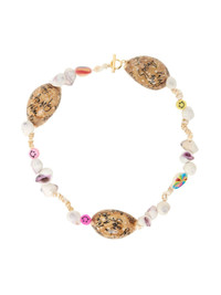 Beaded shell necklace in tan and white. · Cowry shells with logo printed in black at length · Graphic beads in pink and yellow at length · Logo-engraved toggle fastening · L21 in Supplier color: Multicolor Shell, brass. Made in Italy 221695F023001