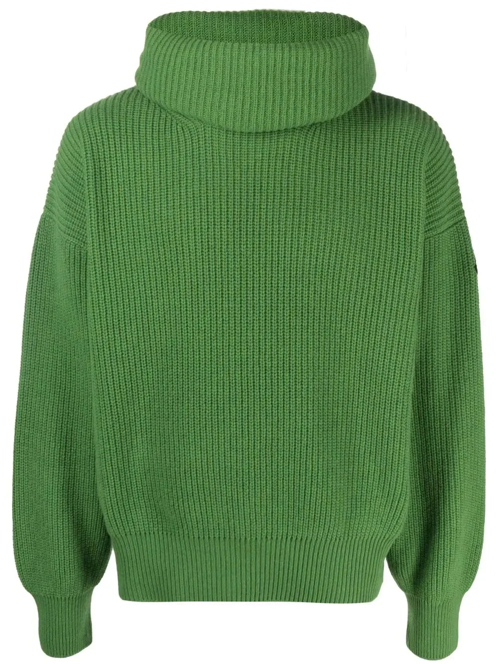 x Moncler roll-neck wool sweater Presented as part of Palm Angels' collaboration with Moncler, this wool sweater is designed with a relaxed roll-neck style. The green-hued garment is accented with a patch to the sleeve, combining both logos in one for a hybrid style. Made in Italy Composition Wool 100% Washing instructions Dry Clean Only