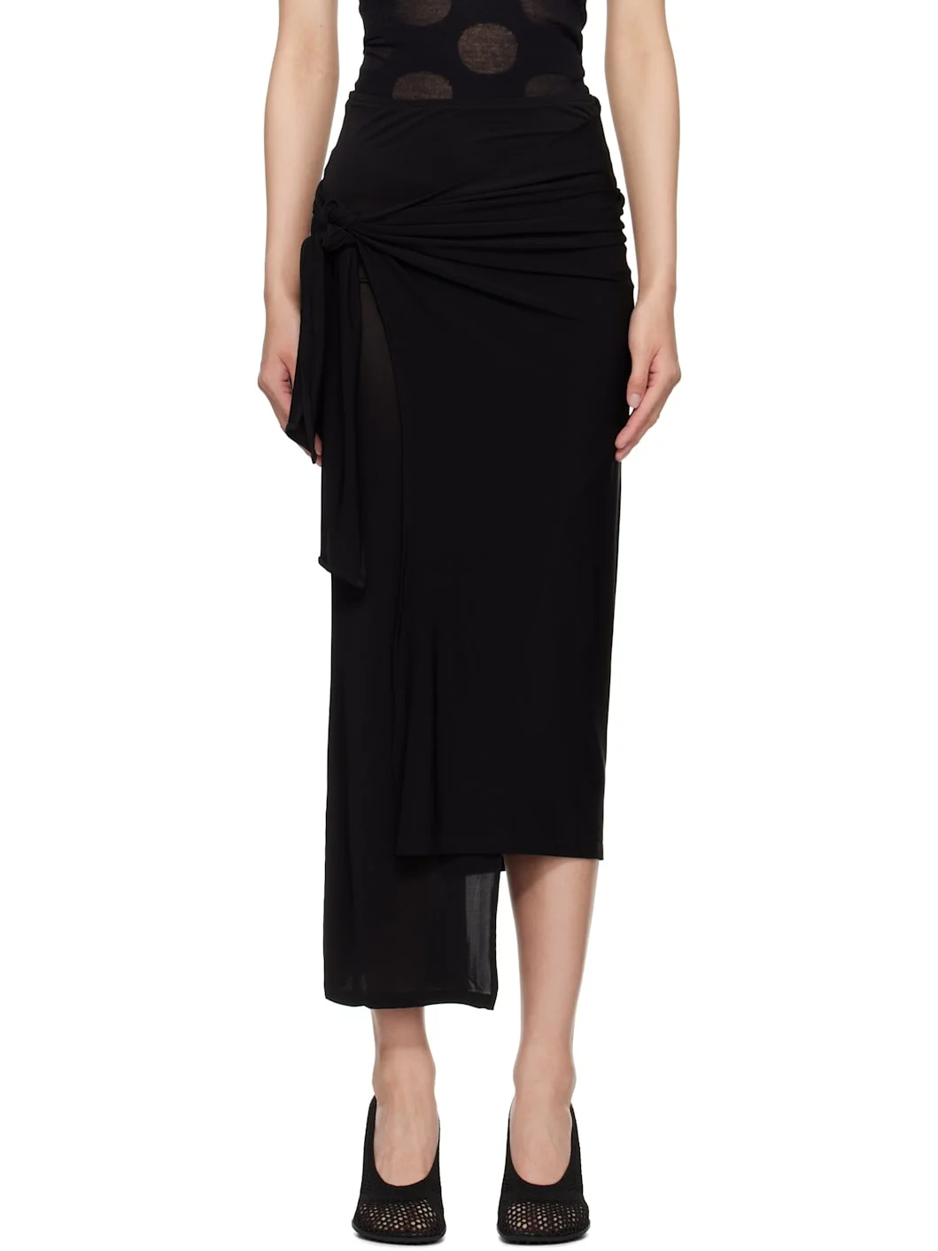 Semi-sheer stretch viscose maxi skirt. · FSC-certified viscose · Wrap construction · Self-tie fastening Supplier color: Black 92% viscose, 8% elastane. Made in Portugal 252648F093002