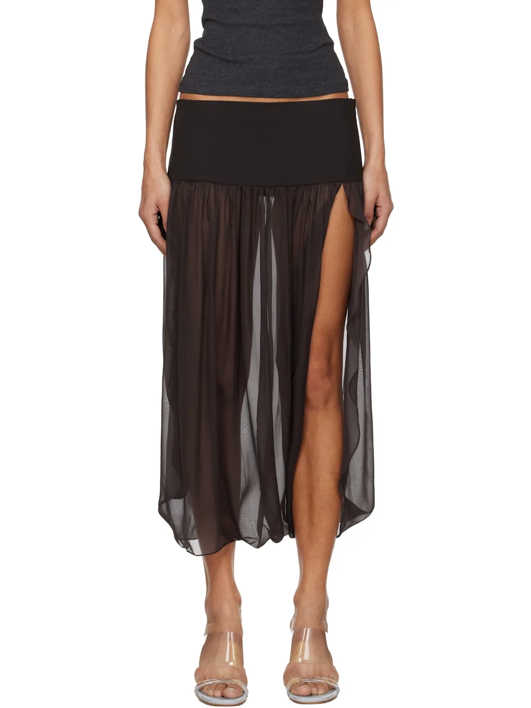 Sheer silk chiffon shorts. · Mulesing-free stretch wool-blend twill waistband · Concealed zip closure at side seam · Dropped inseam · Slit at outseam · Unlined Supplier color: Taupe Body: 100% silk. Trim: 53% recycled polyester, 43% wool, 4% elastane. Made in Spain 261648F092005