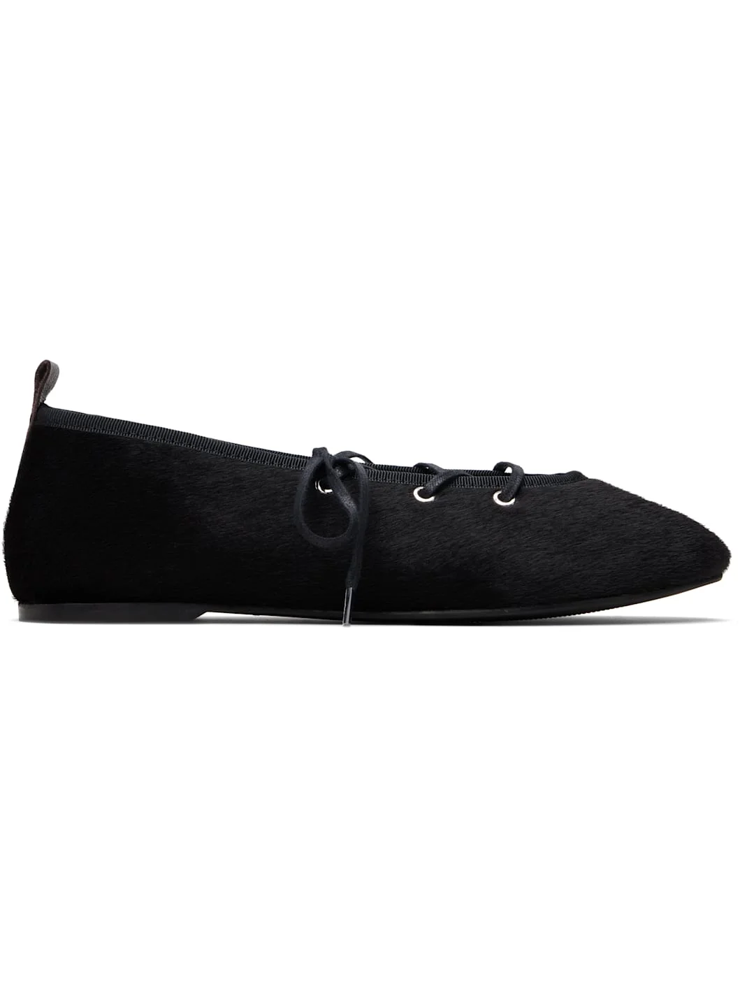 Hair-on leather ballerina flats. · Lace-up closure · Grosgrain trim at collar · Buffed leather pull-loop at heel · Rubber sole Supplier color: Brown Upper: leather. Sole: rubber. Made in Spain 261648F118004
