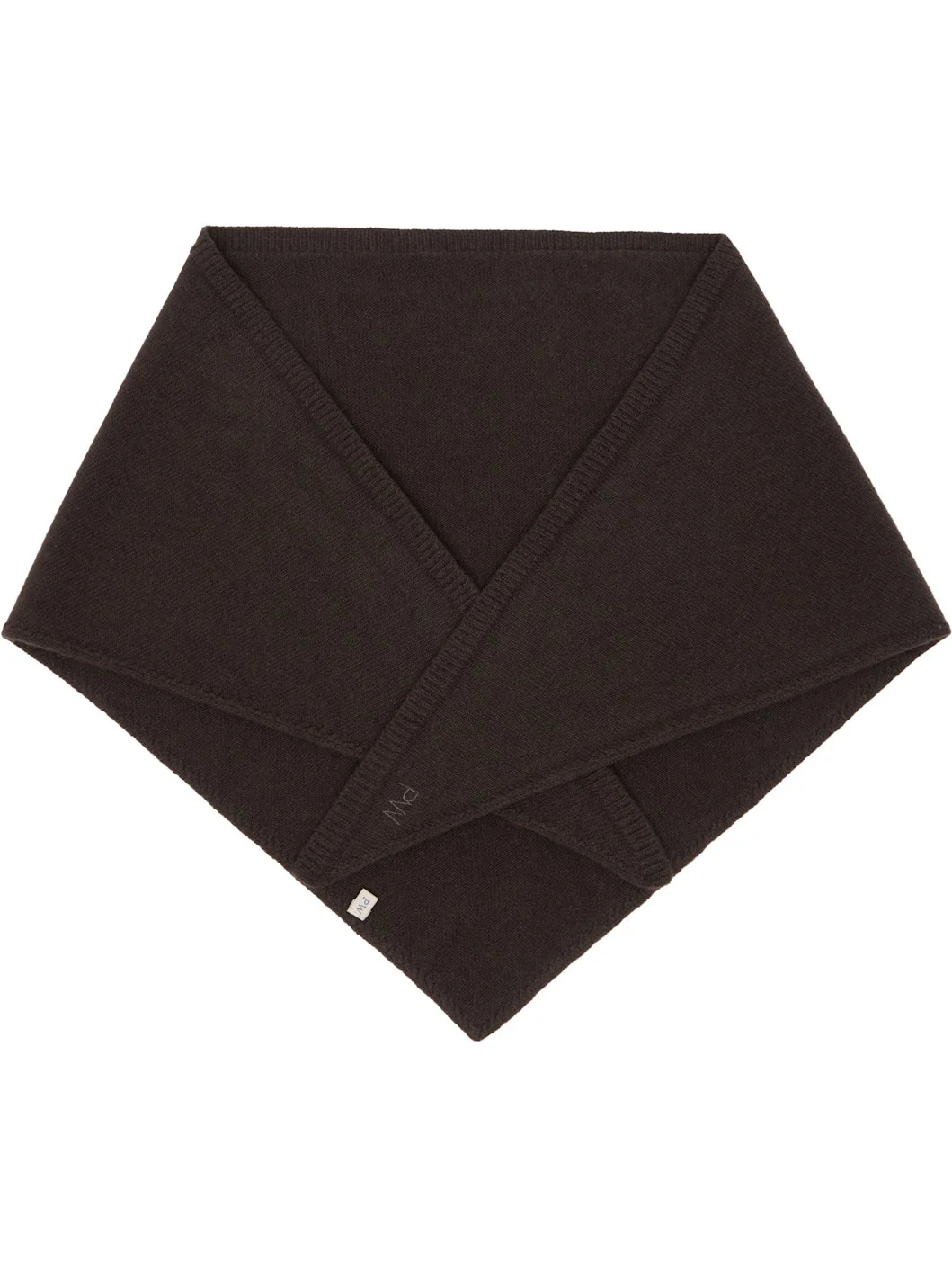 Triangular knit wool scarf. · Mulesing-free wool · Rib-knit edges throughout · Logo embroidered at face · Logo flag at back face · L46" x W18.25" Supplier color: Dark Brown 100% wool. Made in Spain 261648F028009
