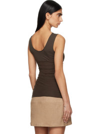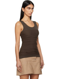 Stretch organic cotton jersey tank top. Sheer recycled polyester mesh overlay. · Scoop neck · Ruching, gathering, and raw edges at overlay Supplier color: Brown Body 1: 94% organic cotton, 6% elastane. Body 2: 100% recycled polyester. Made in Portugal 251648F111017
