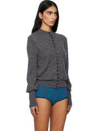 Brushed knit mohair- and alpaca-blend cardigan. · Rib-knit crewneck, hem, and cuffs · Button closure · Dropped shoulders · Bishop sleeves Supplier color: Grey 37% mohair, 37% alpaca, 26% polyamide. Made in Spain 261648F095013